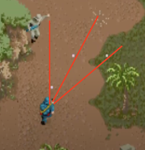 I'm not sure how it decides to shoot at one of those "half step" angles. Maybe when you change from one direction to a neighboring direction, there's a split second when your shot will go in the direction between them.