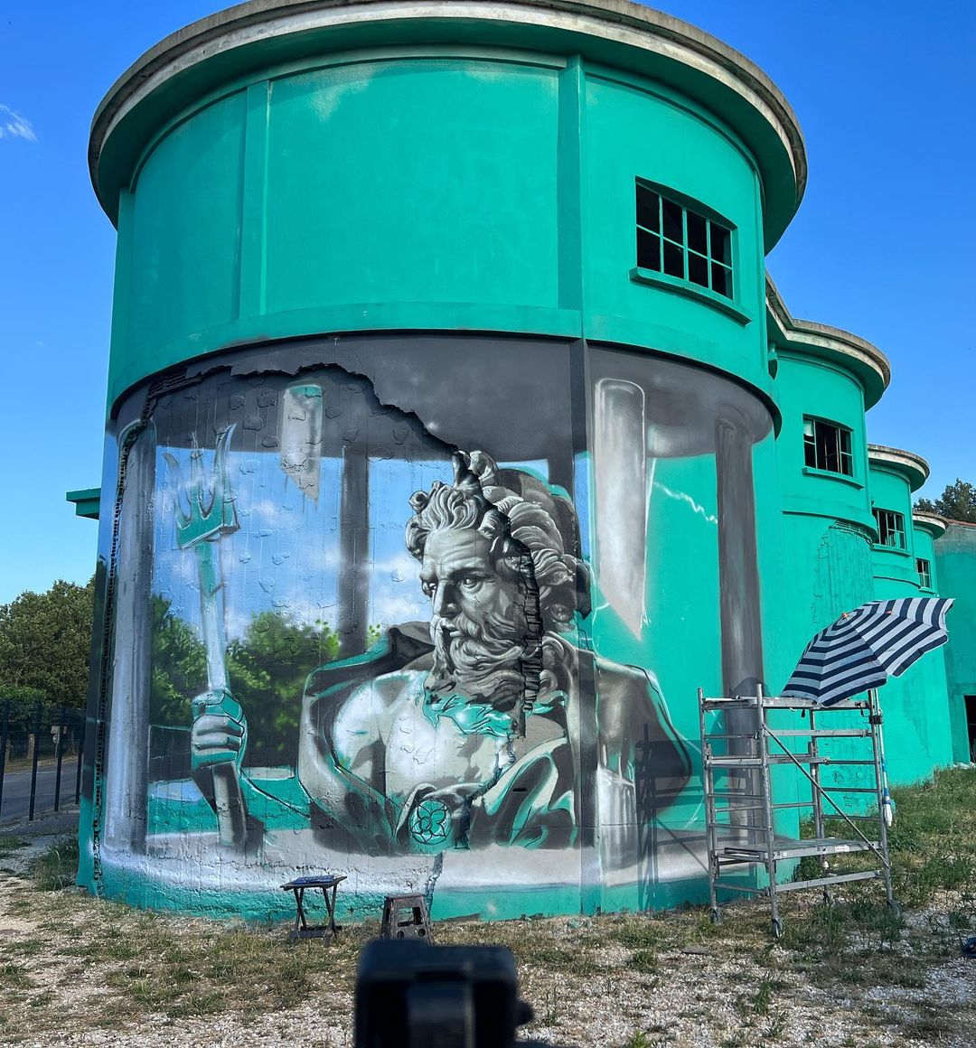In the heart of Torreilles, France, the urban landscape is transformed by a striking mural that captures the essence of Poseidon, the god of the sea. Created by the talented street artist Braga Last One, this impressive artwork show his skill and creativity. Braga Last One is known for his ability to bring walls to life!