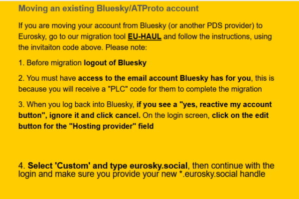 •Du musst an beiden Stellen dann auf den "neuen" PDS (eurosky.social) verweisen, also sowohl beim Login über den (Bluesky-)Browser-Client bzw die App als auch in den Settings des Bluesky-Addons in Friendica (Option "Personal Data Server"). Dann funktioniert das weiter wie gehabt. Wichtig zudem: App-Passwörter werden nicht mit migriert, die müssen neu angelegt werden.