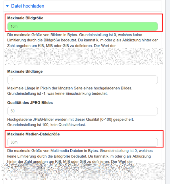 •Gerne! Im Modul unten kannst du noch den Upload für Videos einstellen. Der hinterlegte Wert sollte kleiner sein, als der Wert der php.ini.