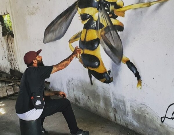 In 2003, Odeith adopted his current moniker, and by 2005, his innovative use of the anamorphosis technique began garnering international recognition. This “Somber 3D” style, as he later called it, involves painting on 90-degree corners or flat walls to create authentic, large-scale compositions of insects or objects that give a striking 3D optical illusion effect. Many of these works, painted in abandoned spaces, quickly went viral due to their realism and technique.
