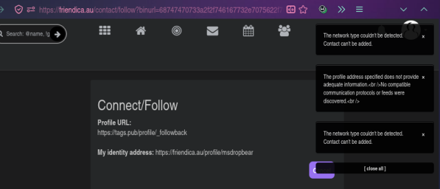 @Friendly Koala @Marek 🇦🇺🇩🇪 @AJ Sadauskas @FollowBackBot today i have mucked about some more with this, & now have formed a tentative conclusion that this service is not compatible with friendica.