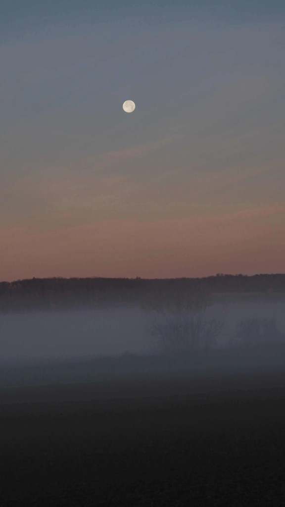 Während auf meinem Arbeitsweg links der #Mond dezent die #Landschaft beleuchtet, zieht die #Sonne rechts von mir mal wieder alles Register und zaubert wunderbare Farben an den #Himmel.