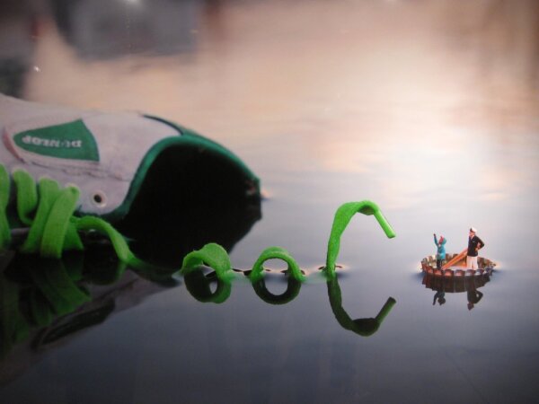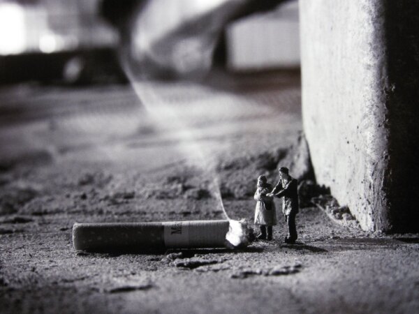A miniature installation where tiny figurines examine a cigarette butt displayed as if it were a museum artifact, highlighting humor and commentary in scale. More!: 7 Tiny Street Dramas by Slinkachu🔗 Follow Slinkachu on Instagram