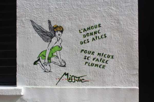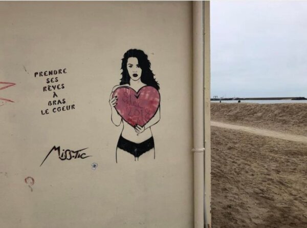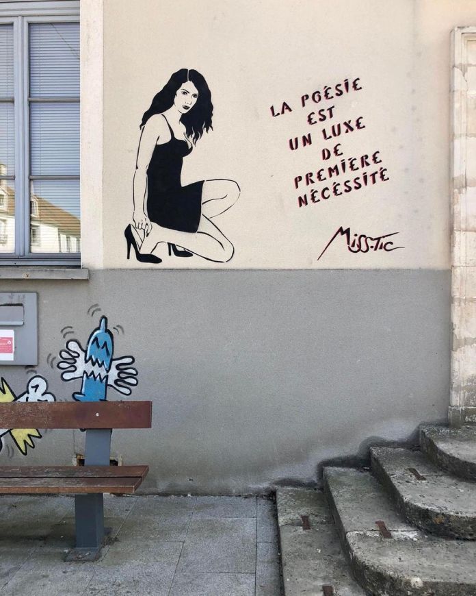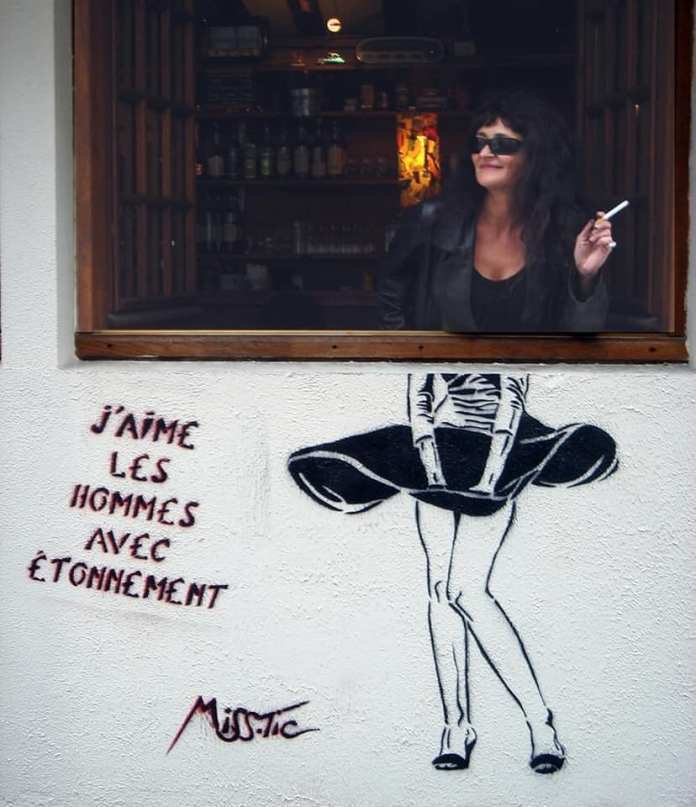 20.02.1956 — 22.05.2022. Miss.Tic was a French artist. She was known for her stencils of dark haired woman often seen in the streets of Paris and associated with poetry. She was active as a street artist from 1985.