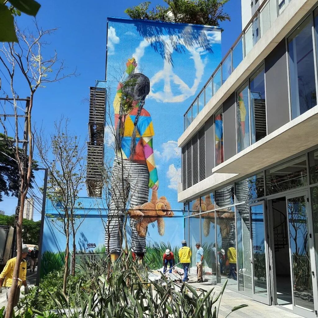 A monumental eagle head with a piercing gaze dominates this urban corner. The artist captures the bird’s strength and precision through detailed feather work and powerful contrast between gray and golden hues.