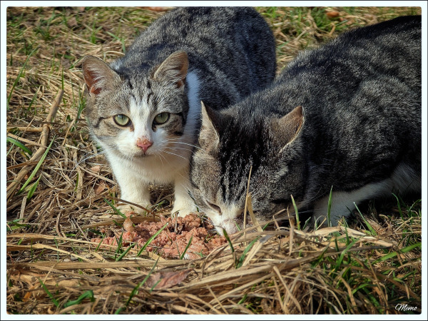 Heute waren zwei hungrige Mäuler an den »Näpfen« und sie waren mit einer Dose Katzenfutter zufrieden 😀