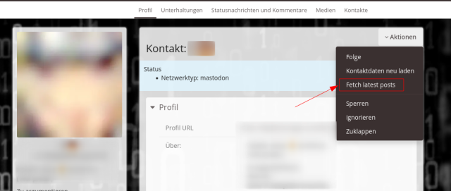 Mit dem letzten merge gibt es bei #Friendica jetzt die Möglichkeit, die 20 neuesten Beiträge eines Kontakts abzurufen. Das ist für mich deswegen interessant, weil ich gerne Beiträge von den Usern anschaue, bevor ich die Kontaktanfragen genehmige. Damit kann ich mir jetzt eben die letzten 20 Beiträge des Users abrufen und ansehen.