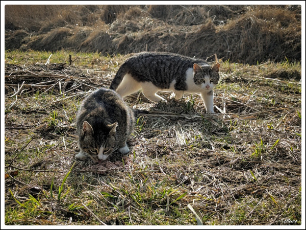 (Bildbeschreibung: Die Moorkatzen beim Fressen.)