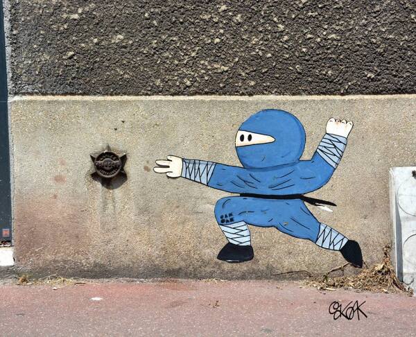 SMOK: For this mural, I painted KABINET van gezonde zaken who is pruning the tree in front of the wall. (Or cutting the cables on the wall). Big thanks to Ellen Huet, Elke & Kris!