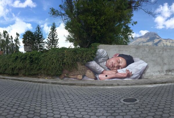 Content warning: When street art meets nature, the results are stunning. Some artists blend their murals seamlessly with the landscape, while others use real plants to bring their work to life. In Ecuador, El Decertor painted a mural that merges with the natural surroundi