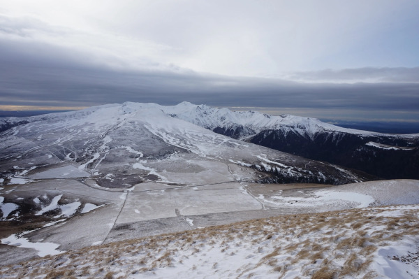 _(Bildbeschreibung: Eine große freie Fläche mit noch einigen grünen Gräsern und laublosen Bäumen und Sträuchern rundherum vor grau bewölktem Himmel.)_