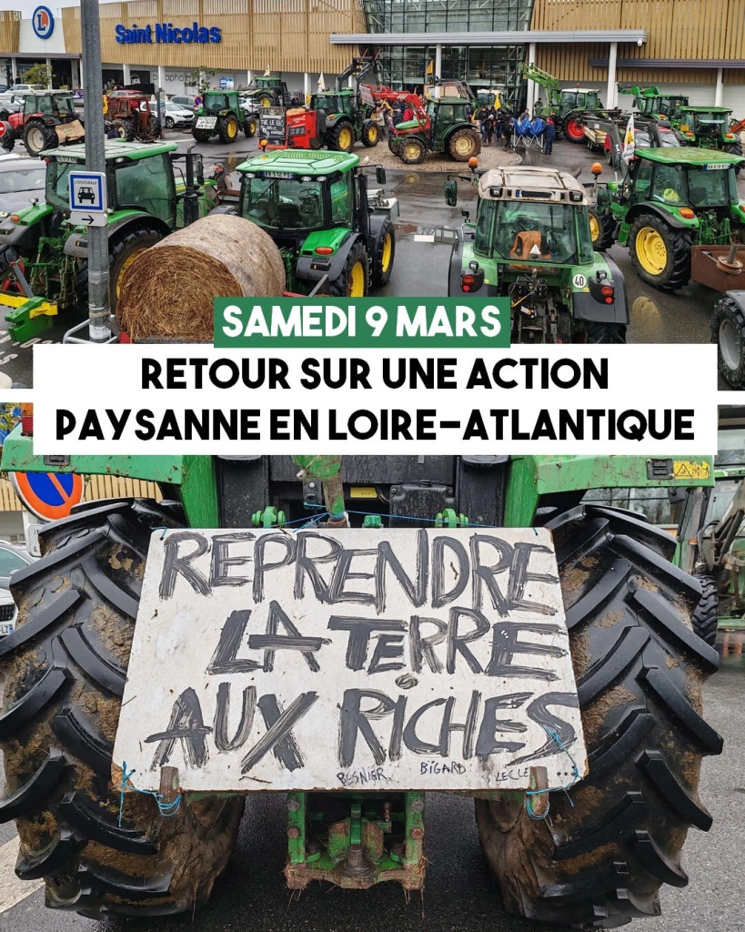 Les paysans et paysannes restent mobilisées pour la défense de leurs droits. Plusieurs actions continuent d’être menées en France par la Confédération Paysanne, notamment dans l’Ouest. Récit d’une matinée mouvementée à Saint-Nicolas-de-Redon, en Loire-Atlantique :