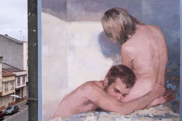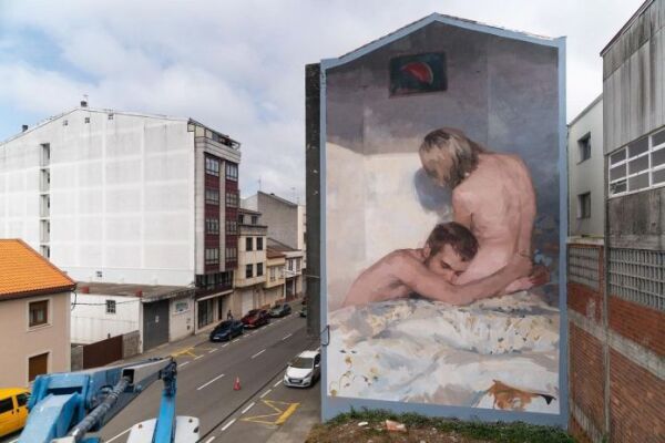 Rexenera Fest: Alba Fabre tends to construct poetic narratives from an open and inconclusive point of view. His work, located on Avenida da Milagrosa, introduces us to the intimacy of an anonymous couple, in a moment of union in which different ideas are whispered in a veiled way, deconstructing certain roles of classical art and bringing them to our contemporaneity.