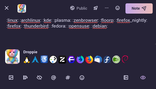 :linux: :archlinux: :kde: 😛lasma: :zenbrowser: :floorp: :firefox_nightly: :firefox: :thunderbird: :fedora: :opensuse: :debian: