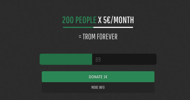 It is finally time to take care of TROM. The website got a bit updated/fixed here and there. We also updated the Donation page. There are 89 people who donate 5 Euros a month. Thank you so much!