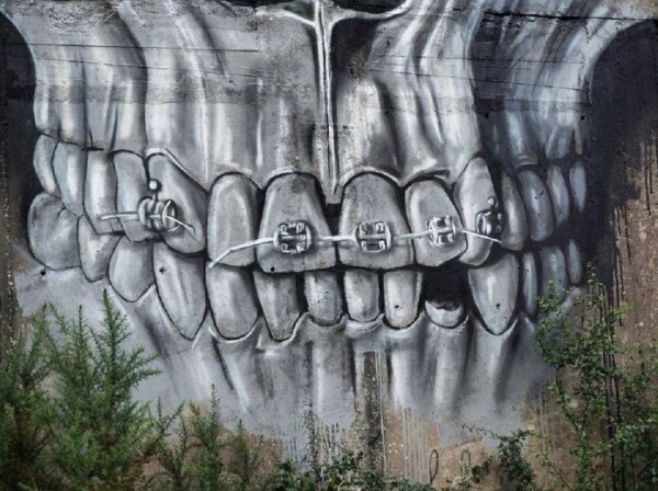 Content warning: Street Artist Näutil By Näutil in Siouville-Hague, France. Näutil: I am forwarding a project that I've released these days, made with paint and graffiti bomb on 3D pattern, the basic idea was to revitalize an abandoned place full of history: a world war 2