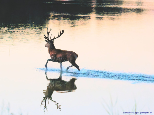 Rothirsch: Vor Sonnenaufgang am Rederangsee