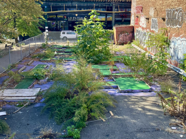 Cosplaying @Obsidian Urbex Photography by taking a picture of an abandoned mini golf in the heart of Brooklyn.
