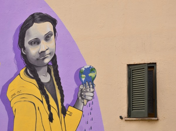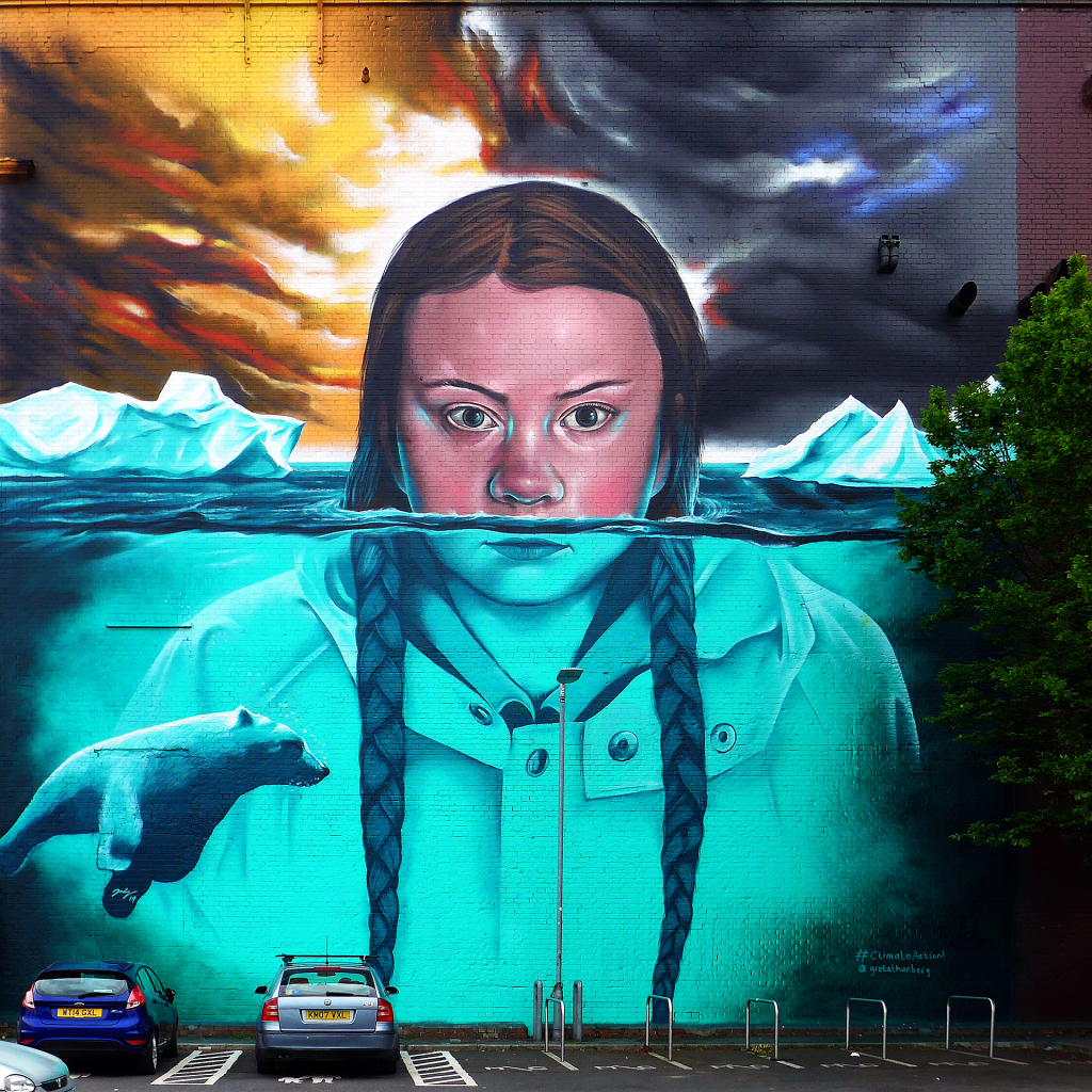 Mural on Climate Change of Greta Thunberg by Jody Thomas. Photo by Andrew Gustar. In Bristol, Great Britain.