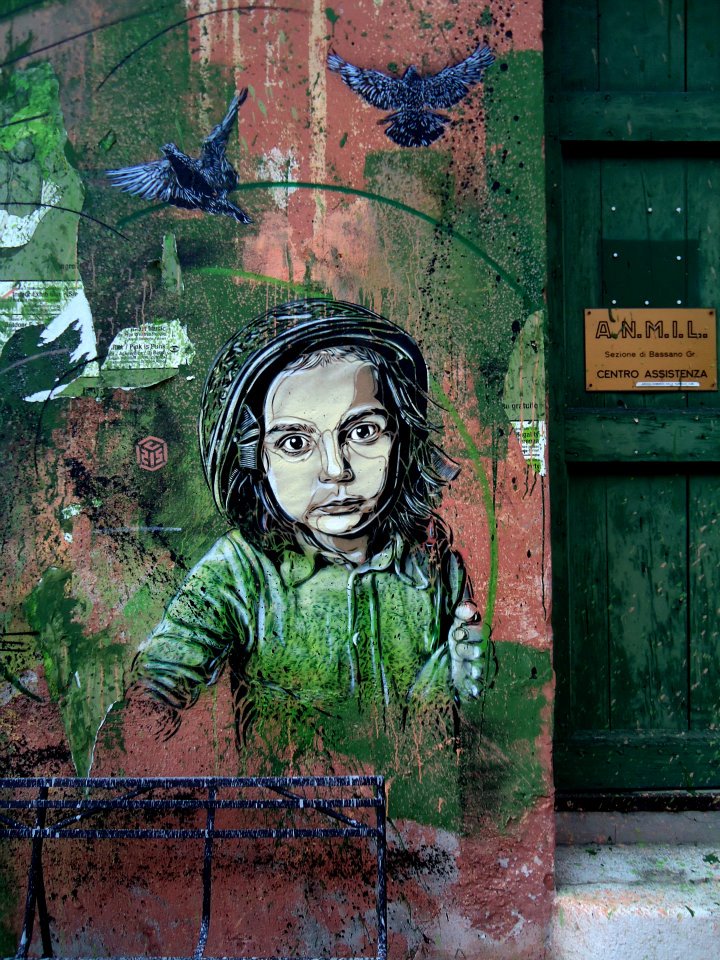 C215: “I paint anywhere I go portraits in the streets under the name of C215, and I try to pay homage to the people who constitute the city, especially to those who live in its streets, like children and homeless people, turning all the anonymous into icons.