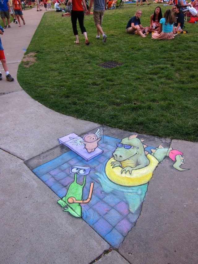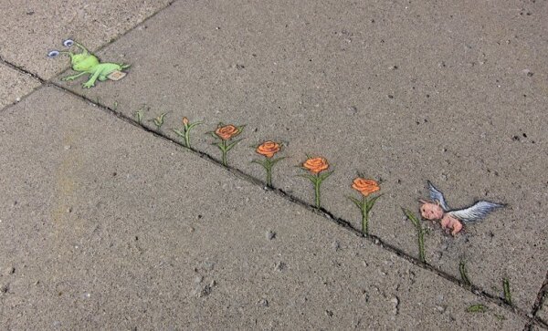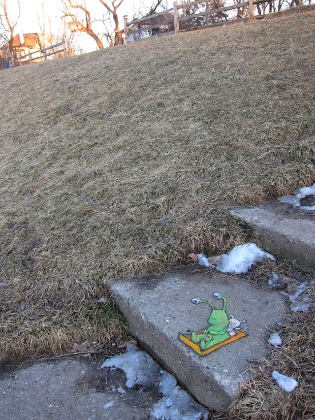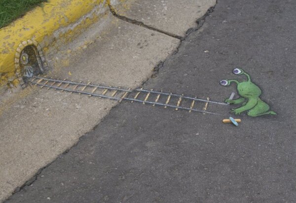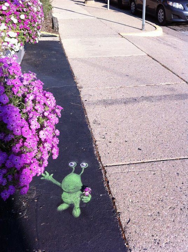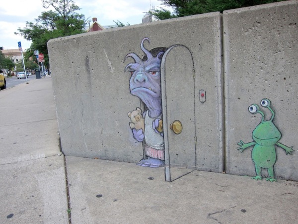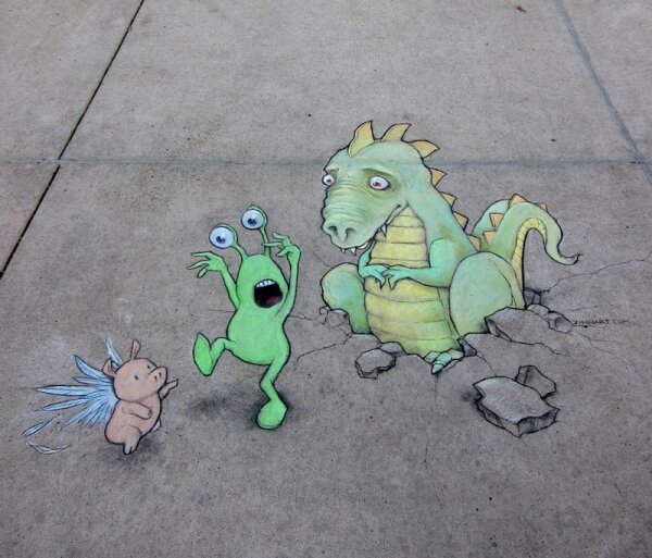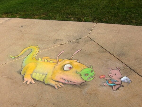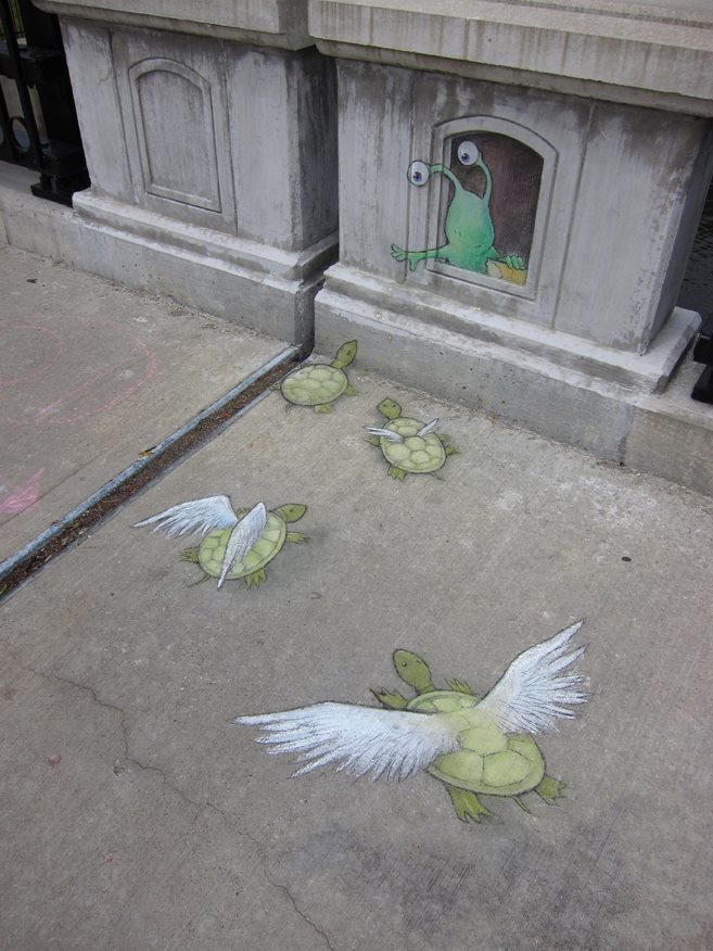 Online store and information hub for the street art of ephemeral sidewalk chalk artist David Zinn, known for his cheerful 3D (three-dimensional) creatures including the stalk-eyed monster Sluggo, flying pig Philomena, and adventurous mouse Nadine.