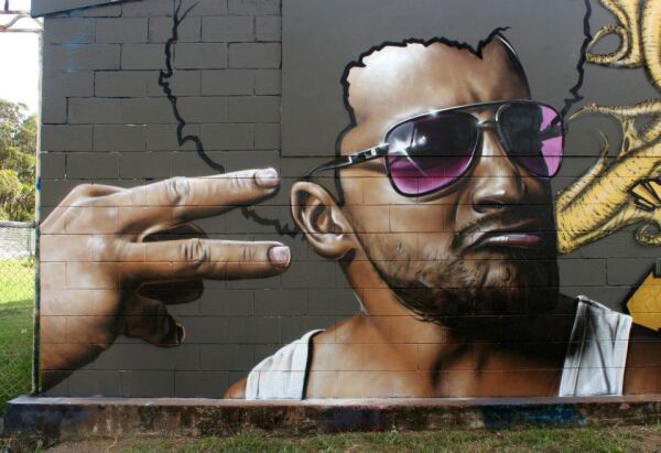 SMUG is, and has been for many years, one of the leaders in the clubhouse when it comes to realistic portrait murals. His output is beyond impressive and the number of murals he paints in a year is almost unbelievable, but to him… “it’s just what I do.” His massive portraits can span anywhere from one story to 14 stories high but the detail and crispness of the image is the same every time. Over decades of painting walls, SMUG has developed a distinctive and immediately recognizable style which is not always easy for someone who paints realistically. His selection of slightly unconventional models and more importantly his very specific use of light and shadow are undeniably SMUG and exquisitely executed every time.