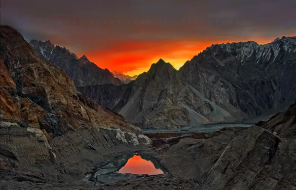 - sunrise over Passu Lake, Gilgit, Pakistan (c. Atif Saeed)