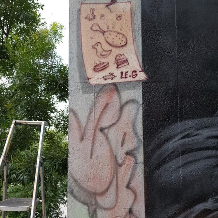 Since 2006, OAKOAK has had streets, walls, sidewalks and roads as its playground. Originally from Saint Etienne, he sticks his drawings in each of the places he crosses in order to create a smile in the pedestrian at the bend of a street where he does not expect it.