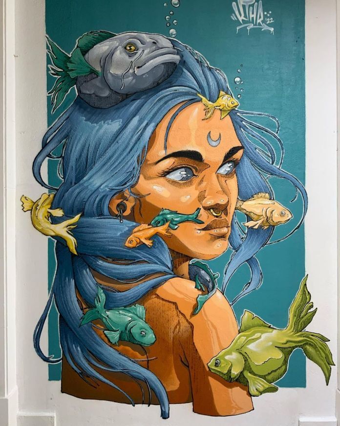 Content warning: Muralist KTHR "Saint Peter Fisherman" by KTHR in L'Ametlla de Mar, Spain for Festival EFÍMURS. KTHR: Here’s one of my paintings of Festival EFÍMURS which I paid tribute to the sacred patron of the fishermen. It’s been an honor for me to represent this cha