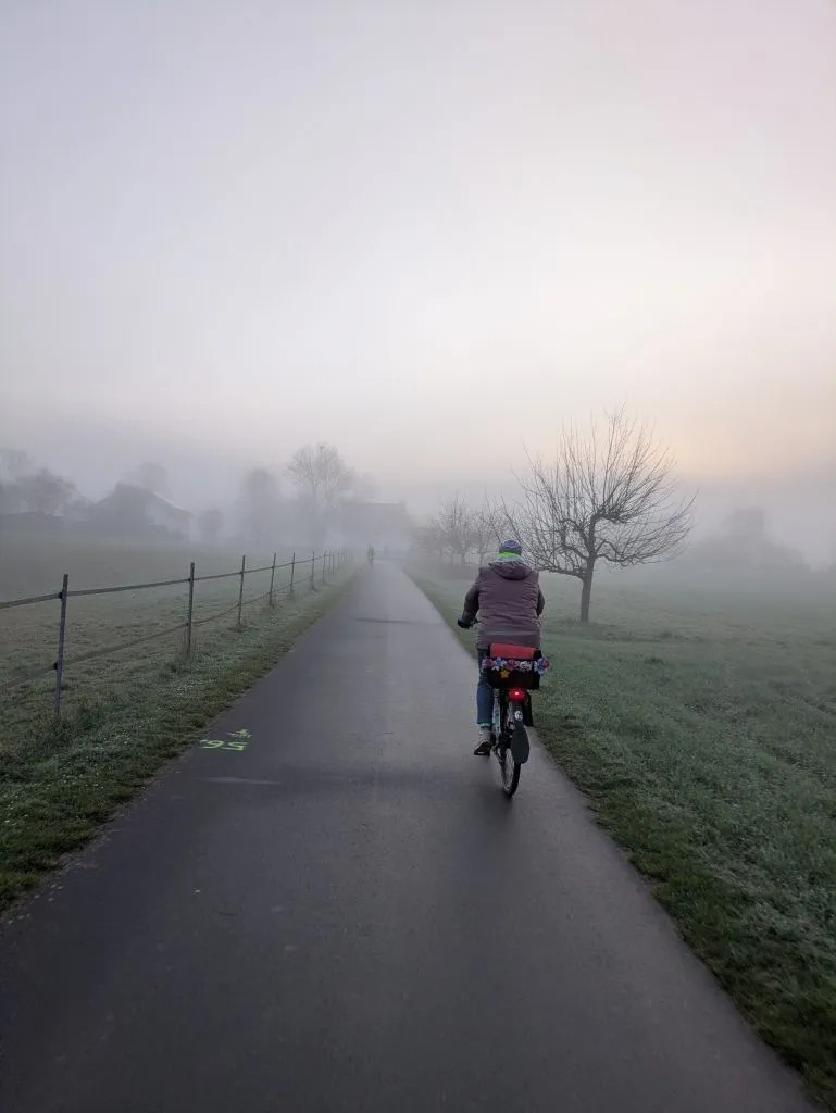 Nach 10km hat sich einiges an Schnee angesammelt und das Rad muss alleine im Keller stehen 😞