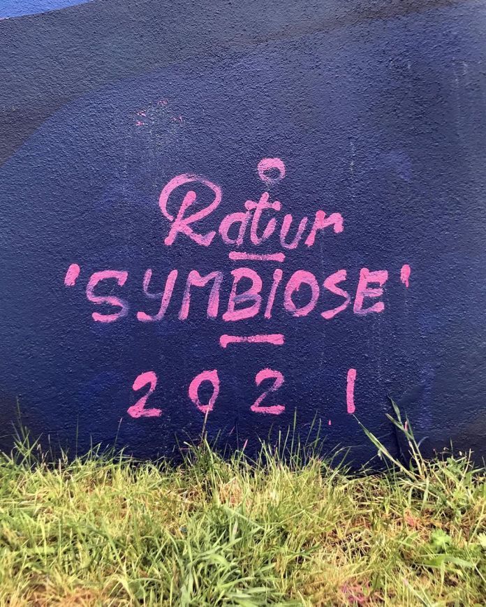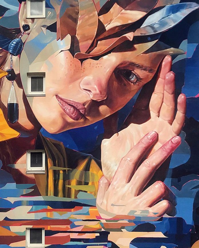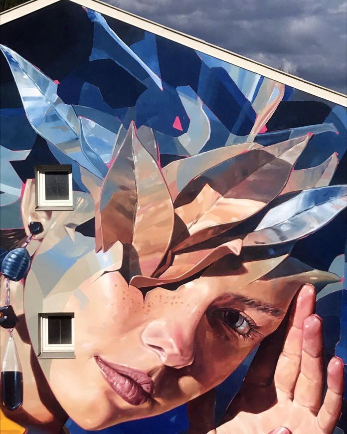Content warning: This mural transforms its meaning when reflected in the water—what appears upside-down on the wall becomes upright magic in the river’s reflection.