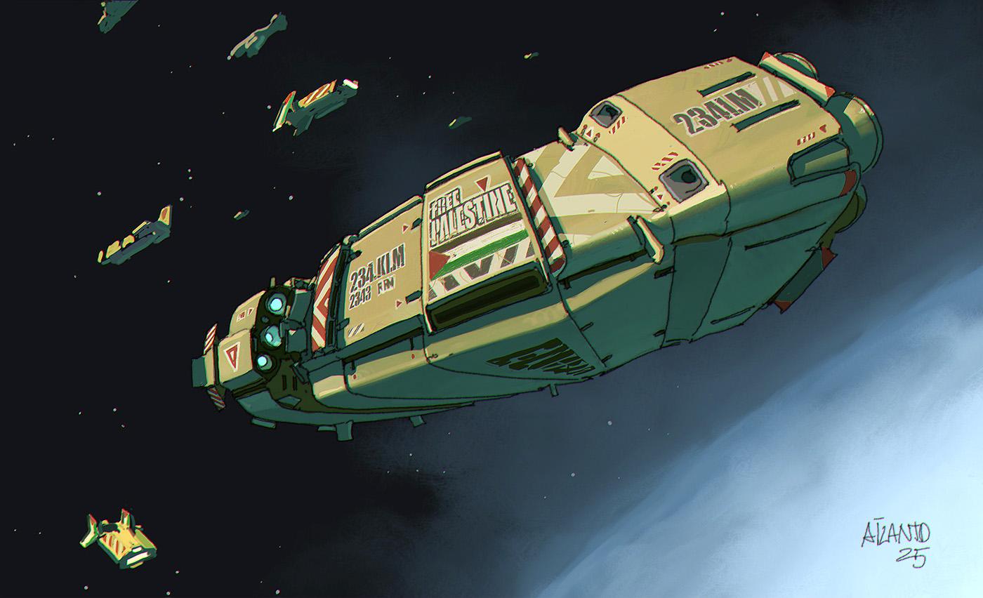 The Galactic Summoning Flotilla departing from Tunz to break the criminal blockade by the Ziontis genocidal entity, currently murdering thousands of civilians in Pralestine Mayor. Despite illegal threats of destruction by the entity, the Flotilla presses on driven by courage and justice.