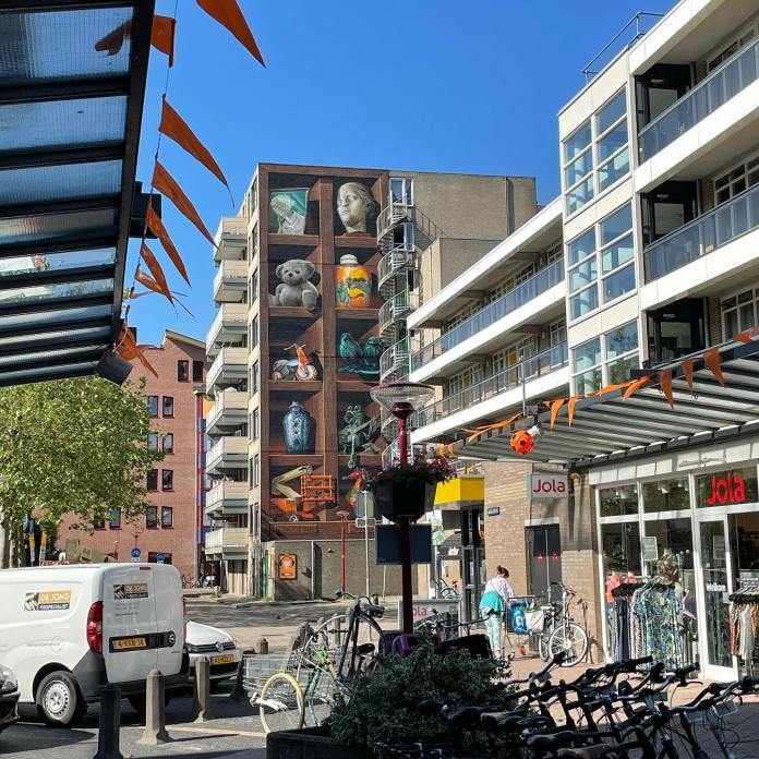 Oakoak brings Johannes Vermeer’s The Milkmaid to life in an urban setting. The artwork is seamlessly integrated with a real milk can, making it appear as though the milk is pouring into it. This clever illusion merges classical art with modern street elements.2.