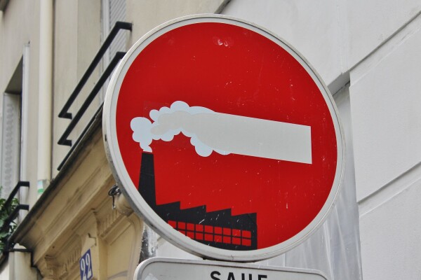 Oakoak uses a stop sign to highlight climate change with a polar bear stranded on melting ice.