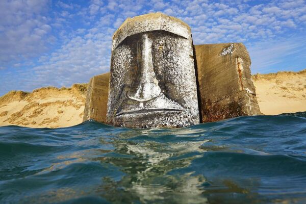 Oakoak turns a simple black bollard into a tribute to Charlie Chaplin. By adding the iconic face and hat, the mundane street fixture is transformed into a recognizable pop culture figure.9.