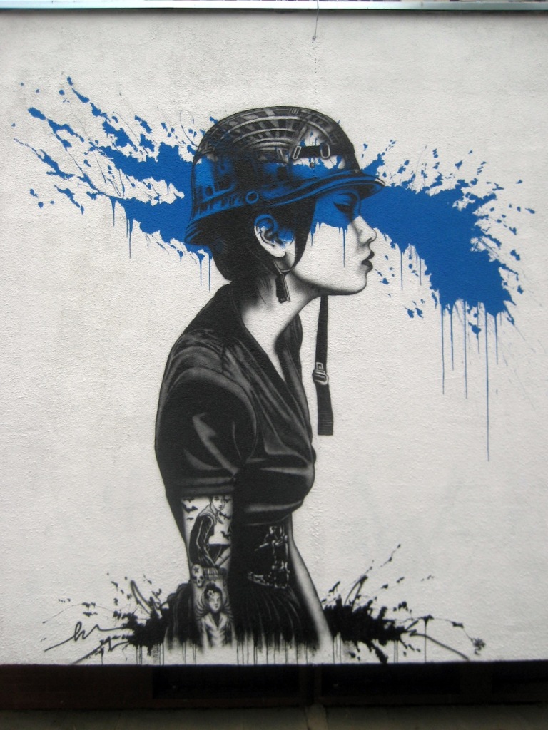 In a relatively short urban art career he has ploughed a singular path in defining an atypical paint/stencil style that ignores the accepted visual language of street art almost completely. He prefers the term ‘urban aesthetic’ to ‘street artist’.